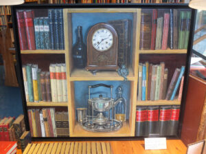 Außerdem sehen Sie zur Zeit in unserem Schaufenster das Gemälde „Bücher und dergleichen“ des Künstlers Michael Reinbold (www.michaelreinbold.de):